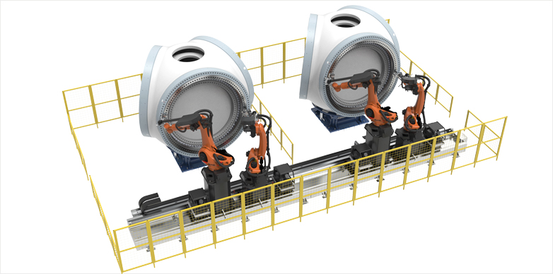 在新能源領域——風電行業,必一运动 B-sports智造國內首創(chuàng)的機器人智能螺栓緊固系統,擁有多項專利技術,風電行業螺栓緊固系統處于市場領先地位;風電主機裝配用的重載AGV智能化脈動生產線,多車聯動技術獨樹一幟;風電葉片大型曲面智能柔性磨拋技術、機架超厚板自動化焊接機器人系...